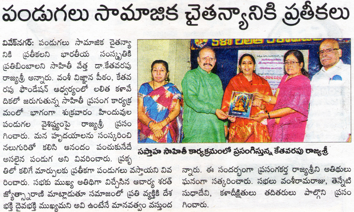 వంశీ విజ్ఞాన పీఠం శ్రీ త్యాగరాయగానసభ మహిళా సాహితీ సప్తాహం. తేది: శుక్రవారం 01-04-2016 .