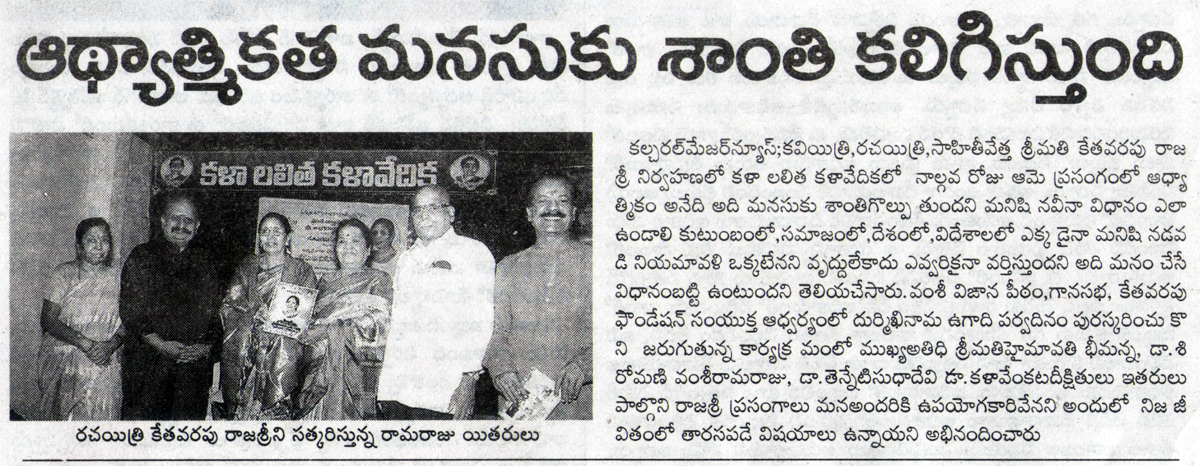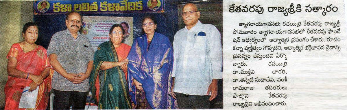 వంశీ విజ్ఞాన పీఠం శ్రీ త్యాగరాయగానసభ మహిళా సాహితీ సప్తాహం. తేది: శుక్రవారం 01-04-2016 .