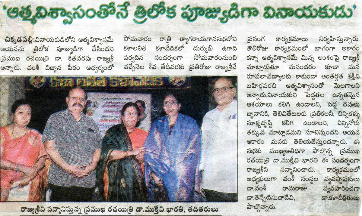 వంశీ విజ్ఞాన పీఠం శ్రీ త్యాగరాయగానసభ మహిళా సాహితీ సప్తాహం. తేది: సోమవారం 28-03-2016